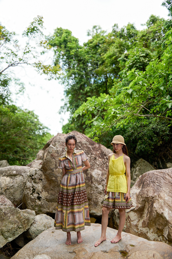 Chất liệu chính: Polyester, xuất xứ Trung Quốc Trong một buổi chiều khi ánh nắng dần lịm xuống nơi sườn đồi, tôi đã khoác lên không gian sắc màu của cảm xúc chiều tà. Bộ