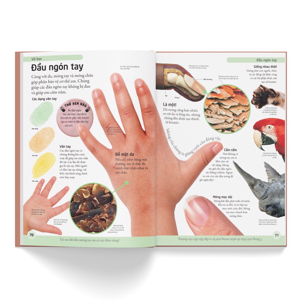 Với các hình minh họa trực quan sinh động, bắt mắt, cuốn sách cung cấp một lượng kiến thức phong phú, súc tính, dễ hiểu, cùng những câu hỏi vui, mẩu thông tin thú vị về cơ thể người. Ngoài ra, không chỉ giới hạn trong việc cung cấp kiến thức, Bách khoa cơ thể người còn gợi ý và hướng dẫn nhiều hoạt động để em hiểu thêm về cơ thể của chính mình.