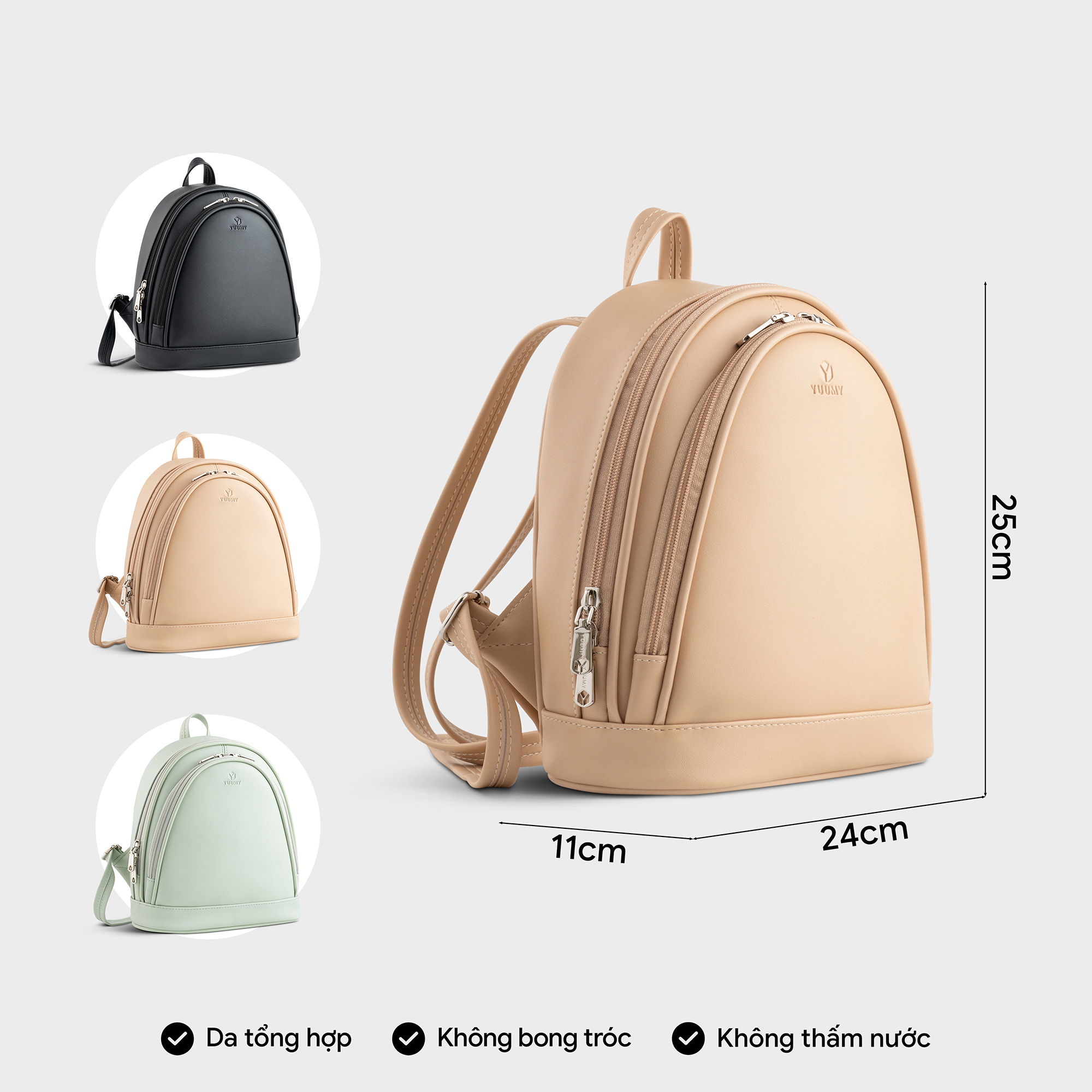 Mua tại TiktokBalo da nữ Yuumy Seasand YBA99 với tone màu cơ bản theo phong cách basic giúp bạn dễ dàng phối hợp với nhiều kiểu trang phục khác nhau. Chiếc balo có kiểu dáng nhỏ gọn, tiện lợi sẽ là người bạn đồng hành lý tưởng theo chân bạn đi khắp mọi nơi: đi chơi, đi du lịch, đi dạo phố cùng bạn bè. Balo có ngăn chính đựng được sổ tay A5, điện thoại, ví tiền và vật dụng cá nhân khá Ngăn phụ rộng rãi giúp bạn sắp xếp đồ đạc gọn gàng và ngăn nắp. THÔNG SỐ KỸ THUẬT: