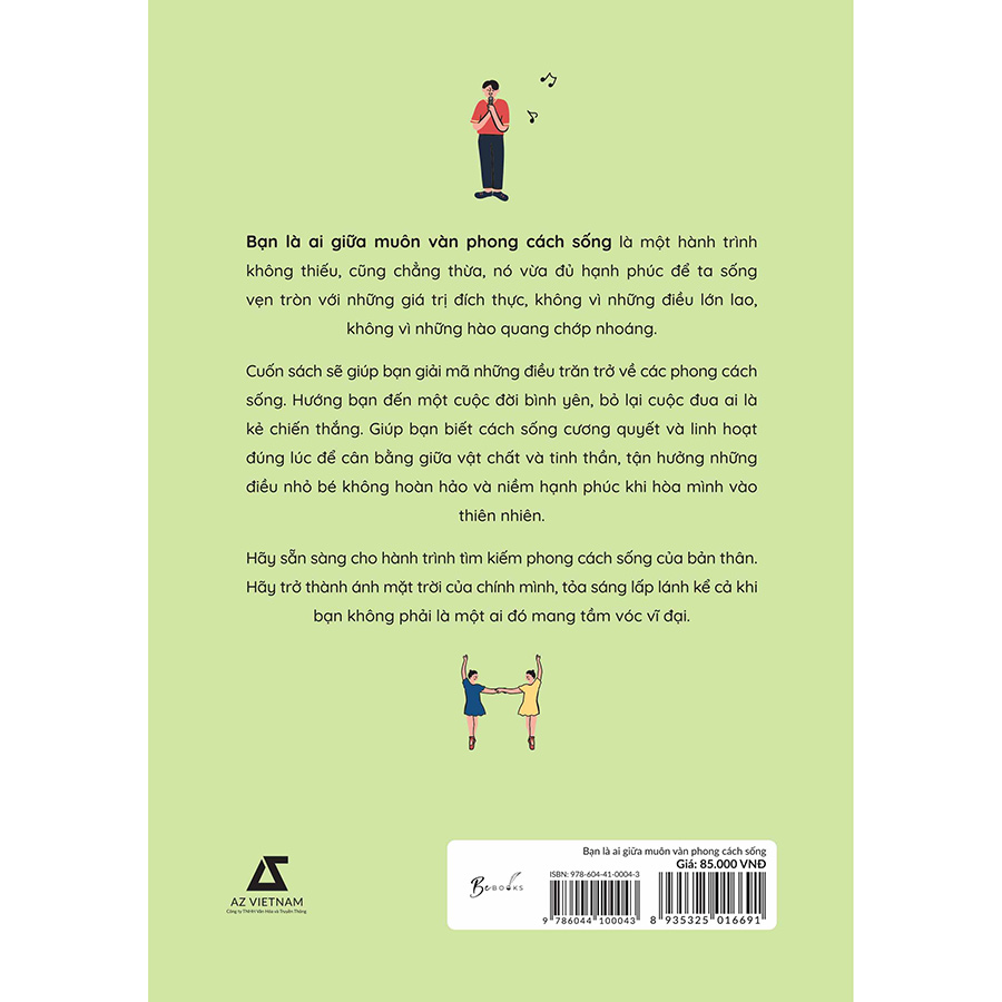“Bạn là ai giữa muôn vàn phong cách sống” dẫn dắt bạn đọc đi vòng quanh thế giới, tìm hiểu về những phong cách sống thú vị và khác biệt. Qua đó, chúng ta sẽ biết cách trân trọng những niềm vui giản dị nhưng đầy ý nghĩa với lối sống Hygge, yêu thương những điều không hoàn hảo như Wabi Sabi hay rèn luyện sự bình tĩnh khi gặp khó khăn cùng Chủ nghĩa khắc kỷ…