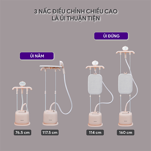 Đặc điểm nổi bật Thiết kế hiện đại, dễ dàng di chuyển và cất giữ Công suất 2000W làm nóng nhanh, tiết kiệm thời gian ủi 3 mức điều chỉnh hơi nước cùng đầu ủi nhọn