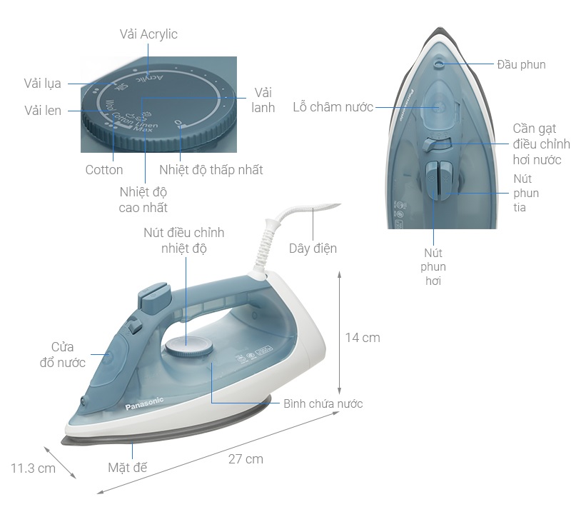 - Có nhiều chức năng ủi: phun hơi, phun tia, ủi khô và ủi hơi nước.