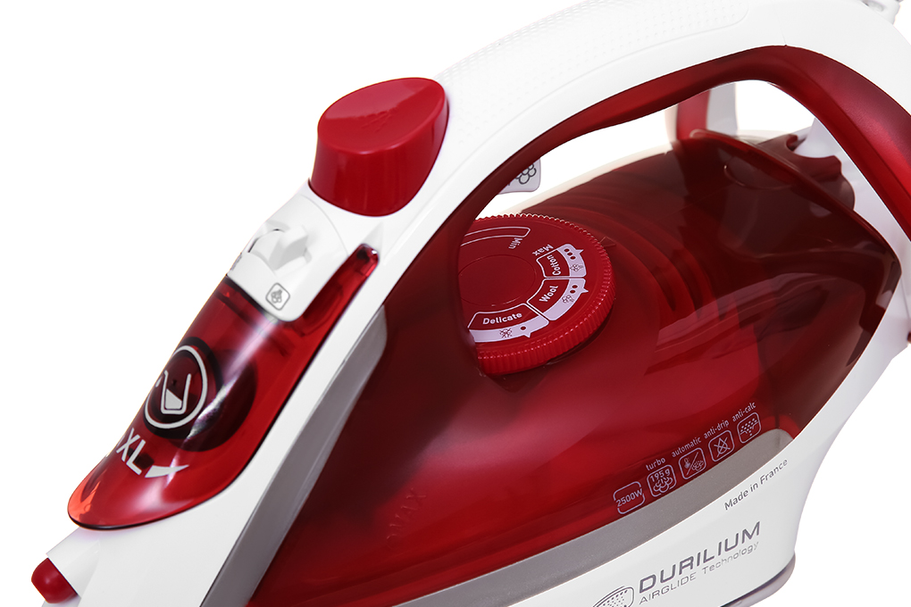 Mặt đế chống dính Durilium AirGlide trượt nhanh trên bề mặt vải giúp ủi quần áo nhanh, dễ vệ sinh