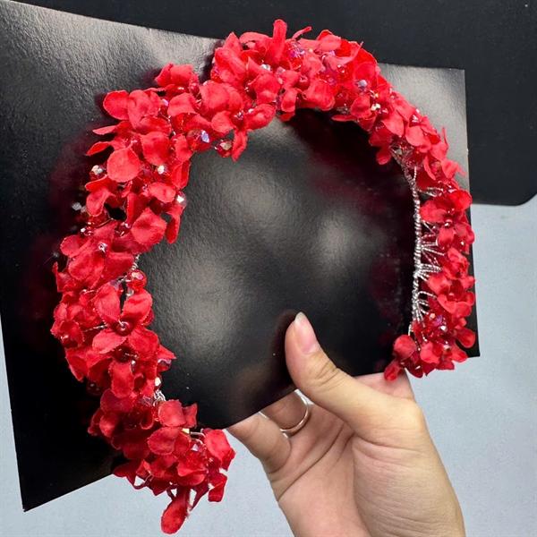✨Băng đô cài tóc hoa nhí đỏ đính hạt pha lê mẫu mới
