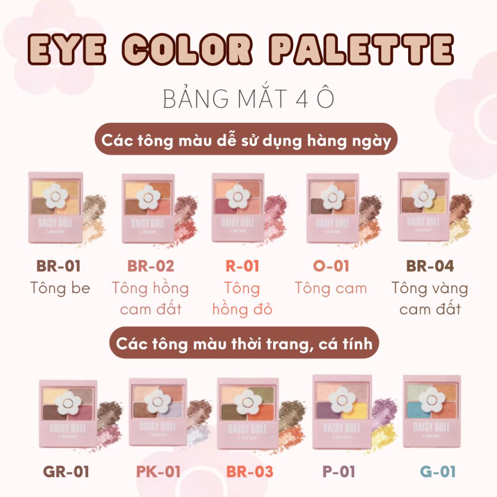 Mọi ấn tượng thu hút nhất đến từ ĐÔI MẮT hoàn hảo!!! Bạn đã thật sự sở hữu một đôi mắt ẤN TƯỢNG??? Đừng lo, nếu bạn chưa hoàn hảo như những gì bạn kì vọng, Daisy Doll sẽ khiến bạn ẤN TƯỢNG hơn những gì bạn có thể tưởng tượng! Bởi Daisy Doll có: Bảng phấn mắt vô cùng phong phú, đa dạng sắc tố, phù hợp với mọi làn da Không còn nỗi lo phấn bay, phấn rơi rụng vào mí mắt, khiến vùng mắt vô cùng nhạy cảm phải khó chịu. Màu sắc đa dạng và độ lên màu chuẩn ngay từ nét chạm đầu tiên. Cho bạn đôi mắt HÚT HỒN, biến hóa ĐA DẠNG với những phong cách riêng lạ, ĐỘC ĐÁO. Mỗi một bảng phấn màu mang theo một nét cá tính riêng biệt. Khả năng pha trộn màu sắc phong phú, kết hợp màu sắc hợp lý. Bạn hoàn toàn có thể sáng tạo nên những đôi mắt thu hút từ những màu sắc cơ bản nhất Daisy Doll chẳng lo thấm nước, giữ cho bạn đôi mắt tuyệt đẹp suốt ngày dài! Thành phần lành tính, DƯỠNG ẨM, chăm sóc làn da ngay cả khi make up. Hấp thụ bã nhờn, che phủ hoàn hảo các khuyết điểm vùng mắt. Thành phần: Diisostearyl malate, polyglyceryl-2 triisostearate, triethylhexanoin, methyl methacrylate crosspolymer, boron nitride, kẽm myristate, silica, hexa(axit hydroxystearic/axit stearic/axit nhựa thông) dipentaerythrityl, Pentylene glycol, bis-diglyceryl polyacyladipate-2, phenoxyethanol, methylparaben, tocopherol, dầu hạt jojoba, dầu cỏ, dầu bơ, mica, hoạt thạch, oxit titan, oxit sắt, fluorophlogopite tổng hợp, borosilicate (Ca / titan), borosilicate (Ca/Al), oxit thiếc, vàng 4, nhôm hydroxit PK-01:sakura pink Khối lượng tịnh: 5.1g Hạn sử dụng: 3 năm Loại da phù hợp: Mọi loại da Xuất xứ: Nhật Bản Thông tin về brand Daisy Doll: Mỹ phẩm Daisy Doll by Mary Quant được phân phối chính hãng bởi Công ty Cổ phần OmiCare.