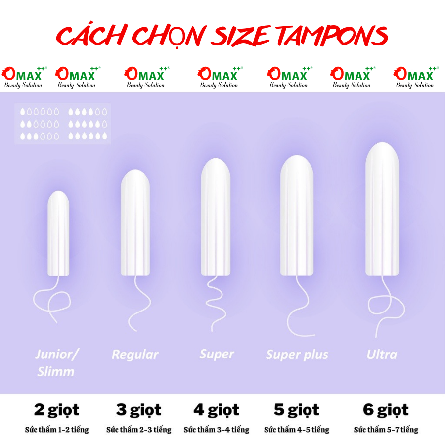 Tampons được chia thành 4 mức dựa theo hình số giọt nước in trên vỏ hộp: