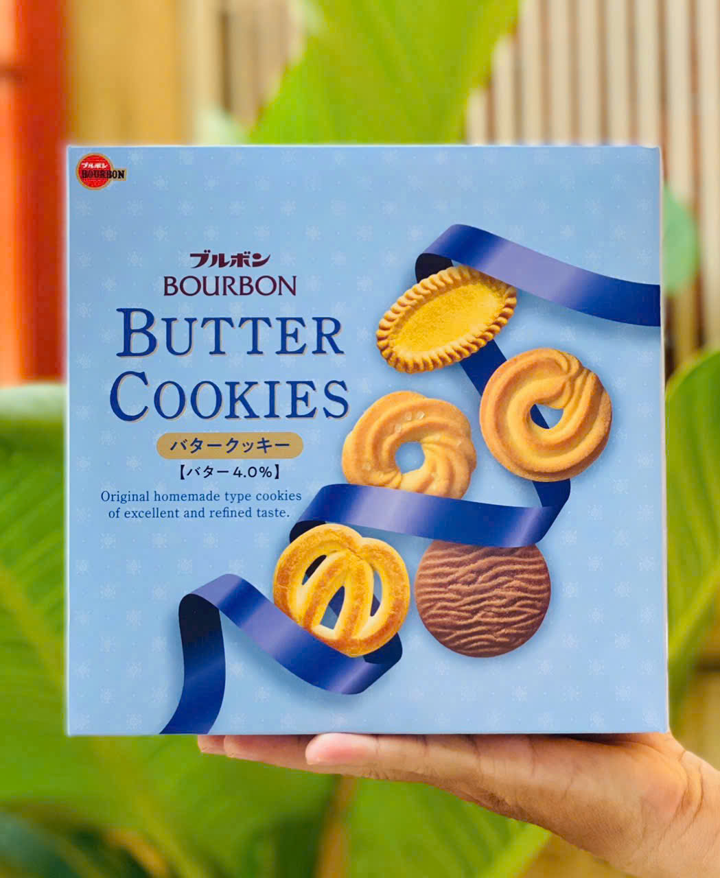 Bánh quy bơ Bourbon là dòng bánh quy bơ truyền thống cao cấp của Nhật Bản. Bánh có sự kết hợp của nhiều loại hương vị khác nhau như: Chocolate, bơ, crepe, hạnh nhân, papira…trên nền