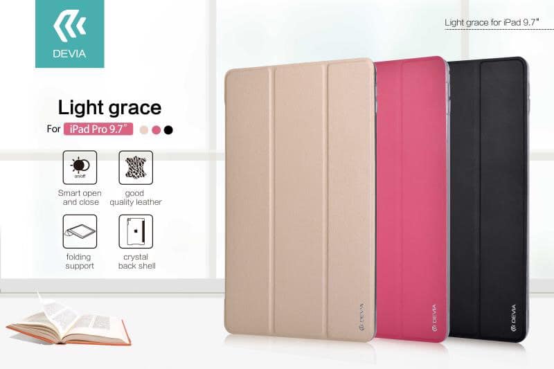 Bao da Devia Light grace dành cho aple ipaad 9.7 inch Chất liệu: PC + PU · Hỗ trợ gấp; · Vỏ sau bằng PC, hiển thị màu thiết bị gốc, chống va chạm, chống
