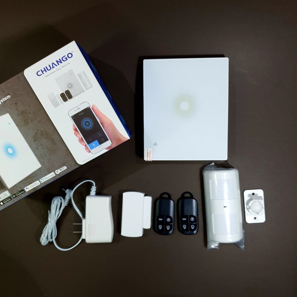 Bộ báo động chống trộm qua smartphone gồm một 1 bộ trung tâm, 1 cảm biến chuyển động hồng ngoại, 1 cảm biến má từ mở cửa, 2 remote điều khiển và 1 loa báo