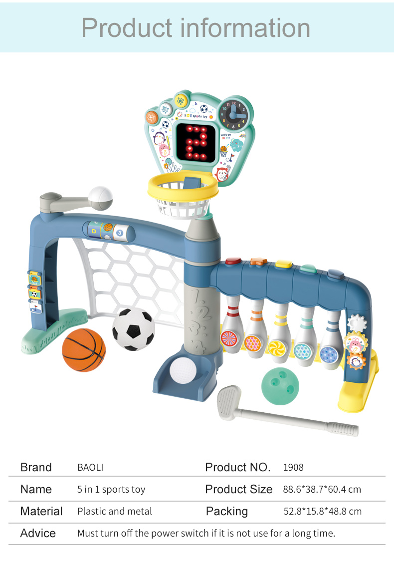 Bộ đồ chơi mô phỏng vận động siêu vui tích hợp 3 môn: bóng đá, bóng rổ và golf mini, giúp bé: Rèn thể lực và kỹ năng phối hợp nhóm. Phát triển phản xạ