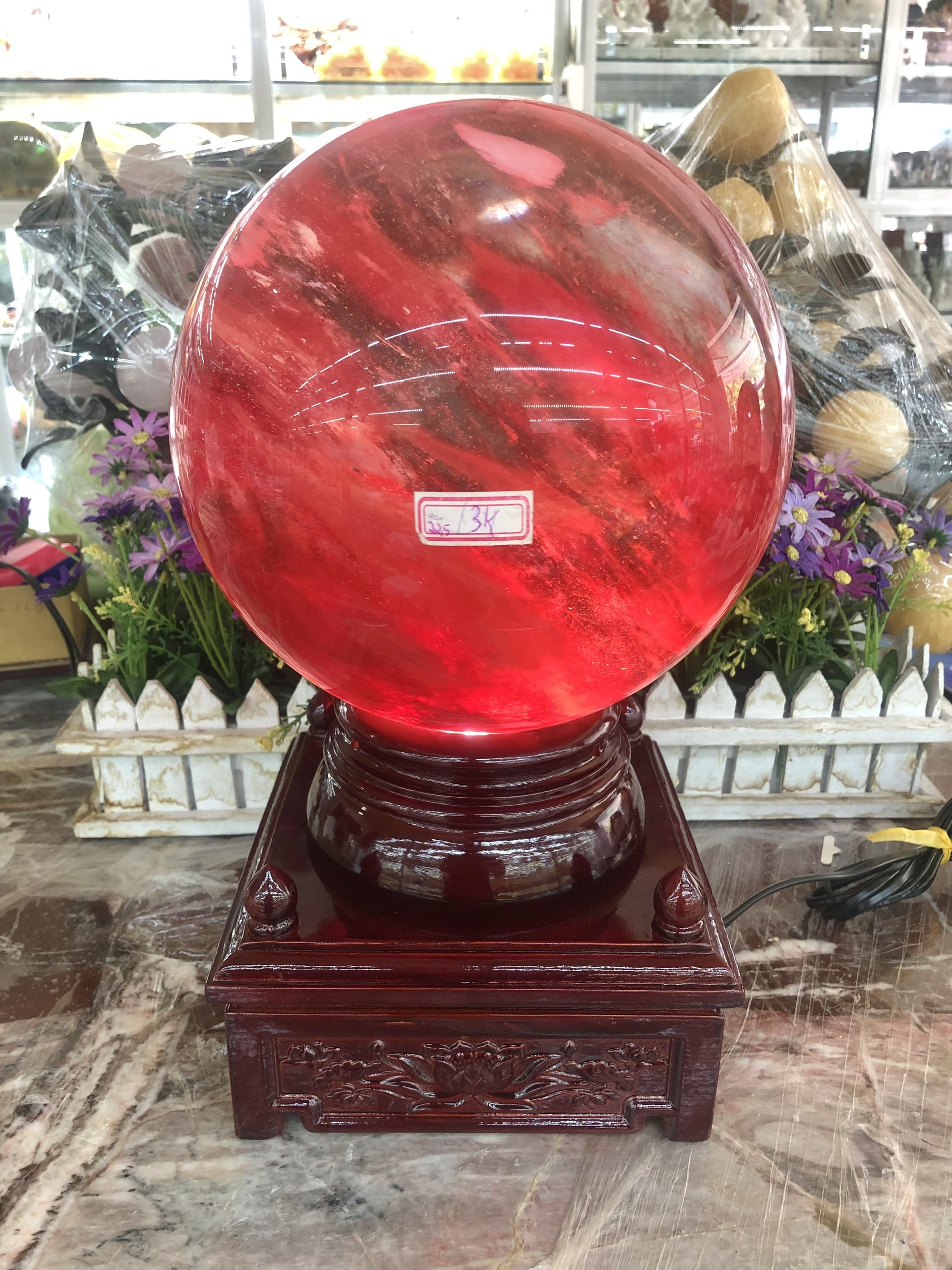 Mua tại TiktokChất liệu: Đá núi lửa Obsidian đỏKhối lượng: Quả cầu đá núi lửa đỏ nặng 13 kgKích thước: Đế gỗ xoay ( Dài 19cm x Rộng 19cm x Cao 14cm ), Cầu đỏ có đường kính 22,5cm