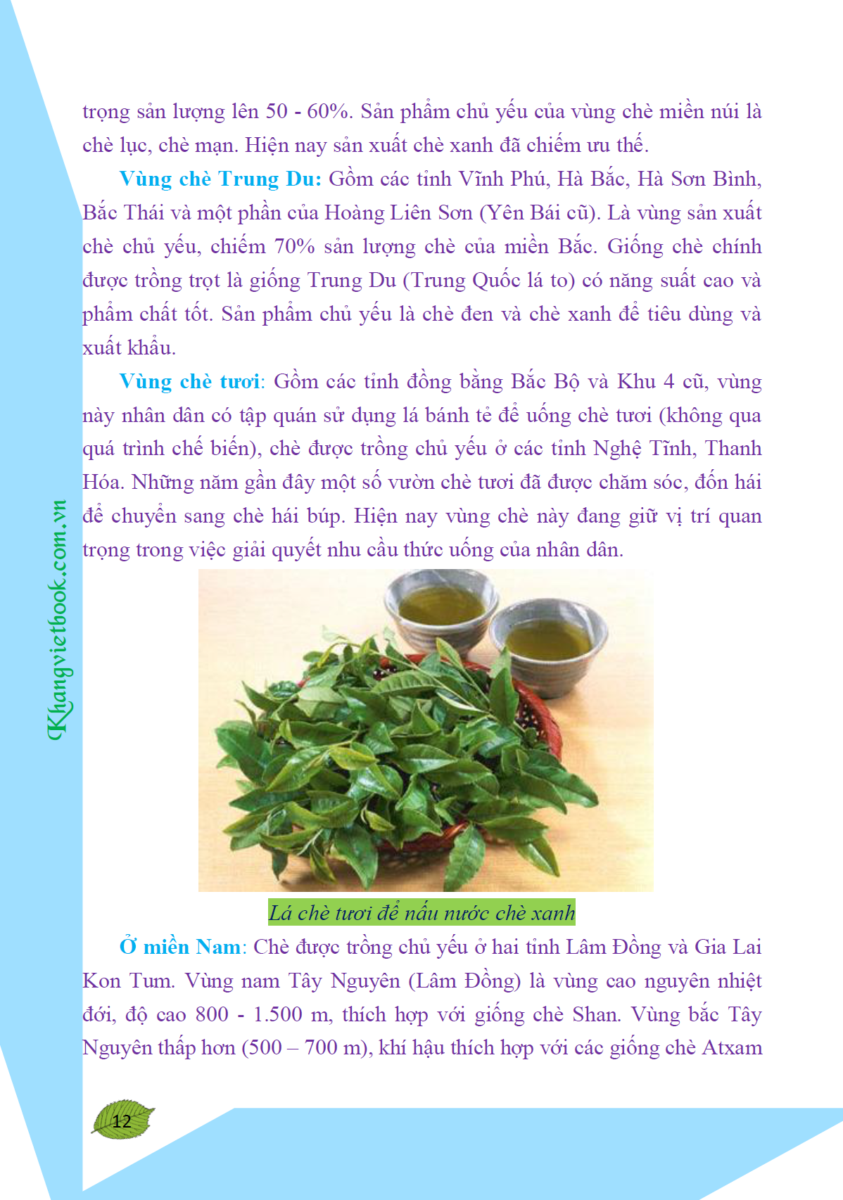 Đến nơi đây, đâu đâu cũng thấy màu xanh của cây chè. Phóng tầm mắt về phía xa xa là những đồi chè xanh đến ngút ngàn, thấp thoáng bóng dáng của những cô gái đang thoăn thoắt hái chè. Gần hơn là những đồi chè bao bọc lấy những ngôi nhà trên sườn đồi xinh xắn. Và khi bước chân vào bất cứ căn nhà nào ở xứ sở tươi xanh này bạn cũng sẽ được mời thưởng thức thứ nước chan chát, ngòn ngọt thanh tao, đó là nước chè xanh - hương vị thanh mát trong lành, đậm đà khó quên.
