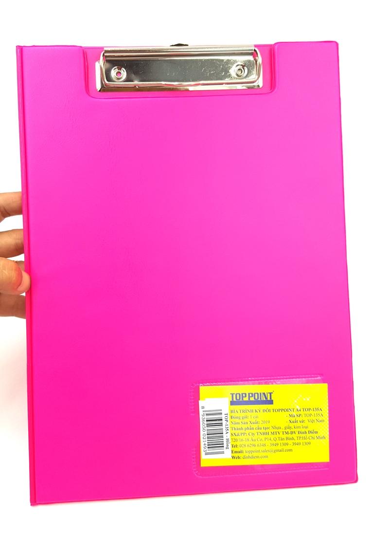 Bìa Trình Ký Đôi Toppoint A4 TOP-135A - Màu Hồng Sản phẩm được làm từ chất liệu nhựa cứng PP cao cấp. Thanh kẹp cũng được thiết kế bằng chất liệu có độ bền cao.