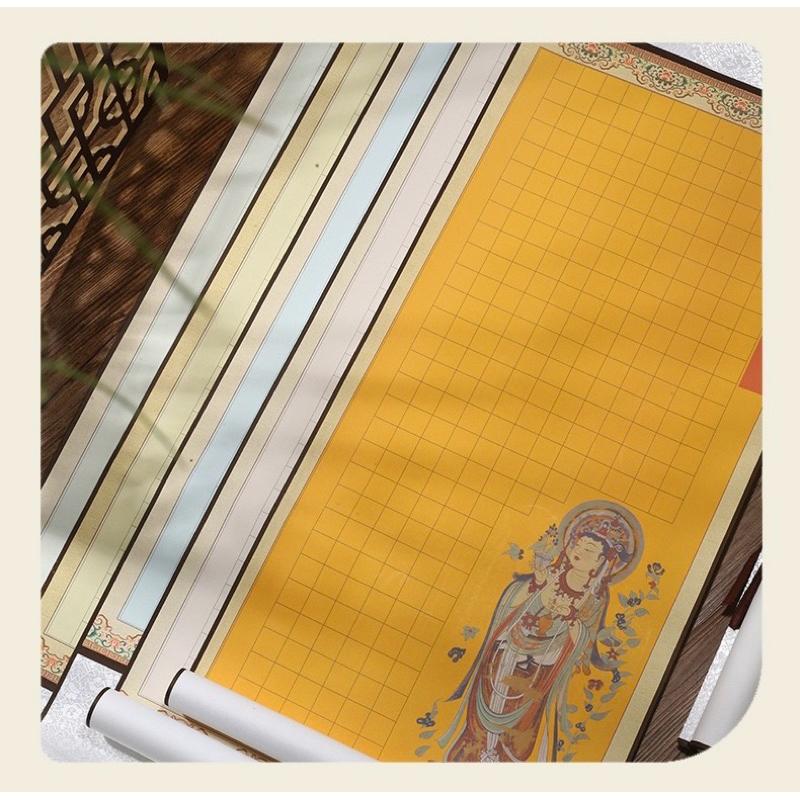 ✨Biểu lụa bồi trục chép Tâm Kinh Bát Nhã & Đại Bi Chú có kẻ ô
