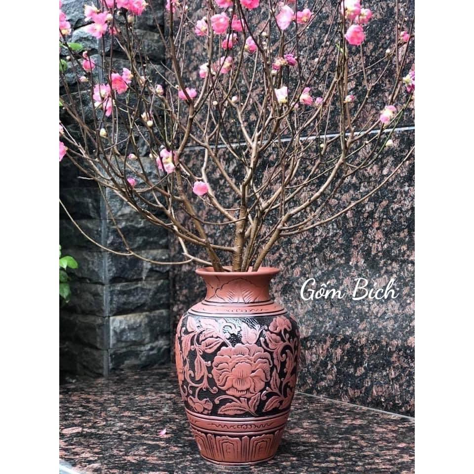 ✨Bình Hoa Lọ Hoa Dáng Vò Khắc Nổi Hoa Phù Dung Đất Đỏ - Gốm Sứ Bát Tràng