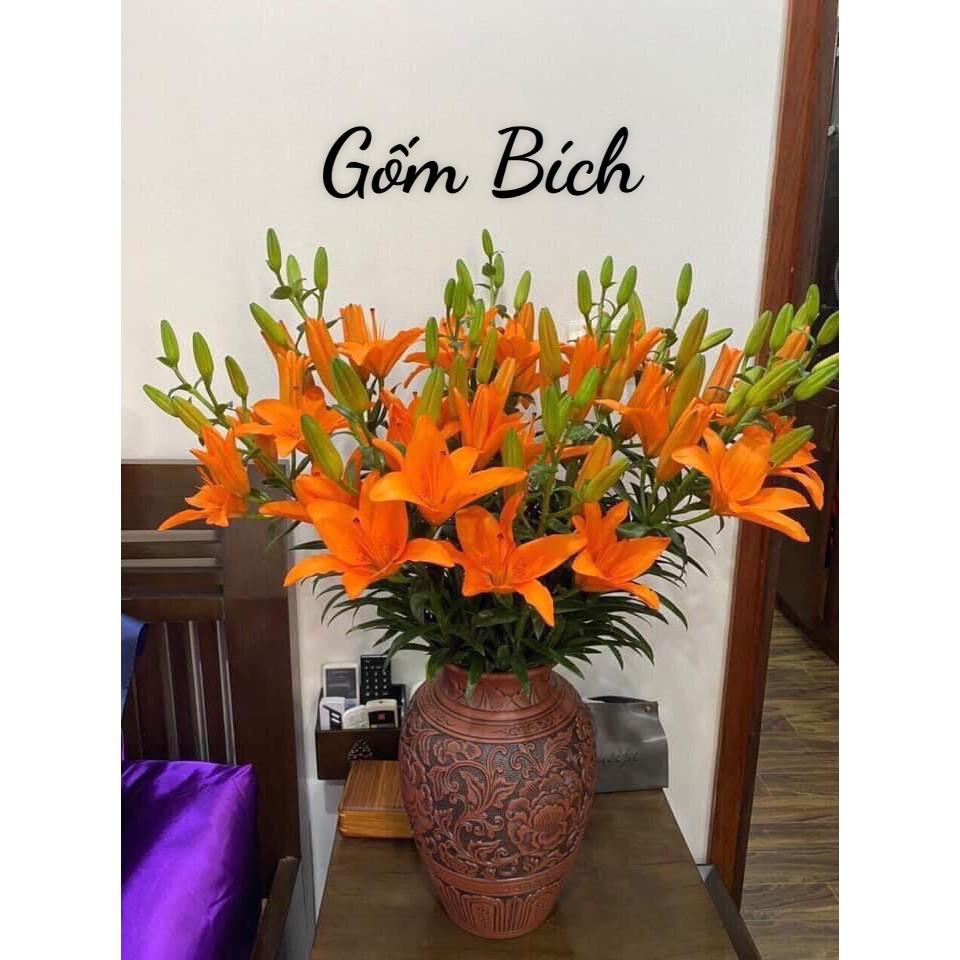 SẢN PHẨM BÌNH HOA, LỌ HOA ĐẤT ĐỎ GỐM SỨ BÁT TRÀNG CAO CẤP CAM KẾT HÀNG BÁT TRÀNG LOẠI 1 SAI ĐỀN TIỀN 100% Thông tin sản phẩm - Lọ hoa Dáng Vò Khắc Nổi Hoa Phù Dung Đất Đỏ - Hàng lo...