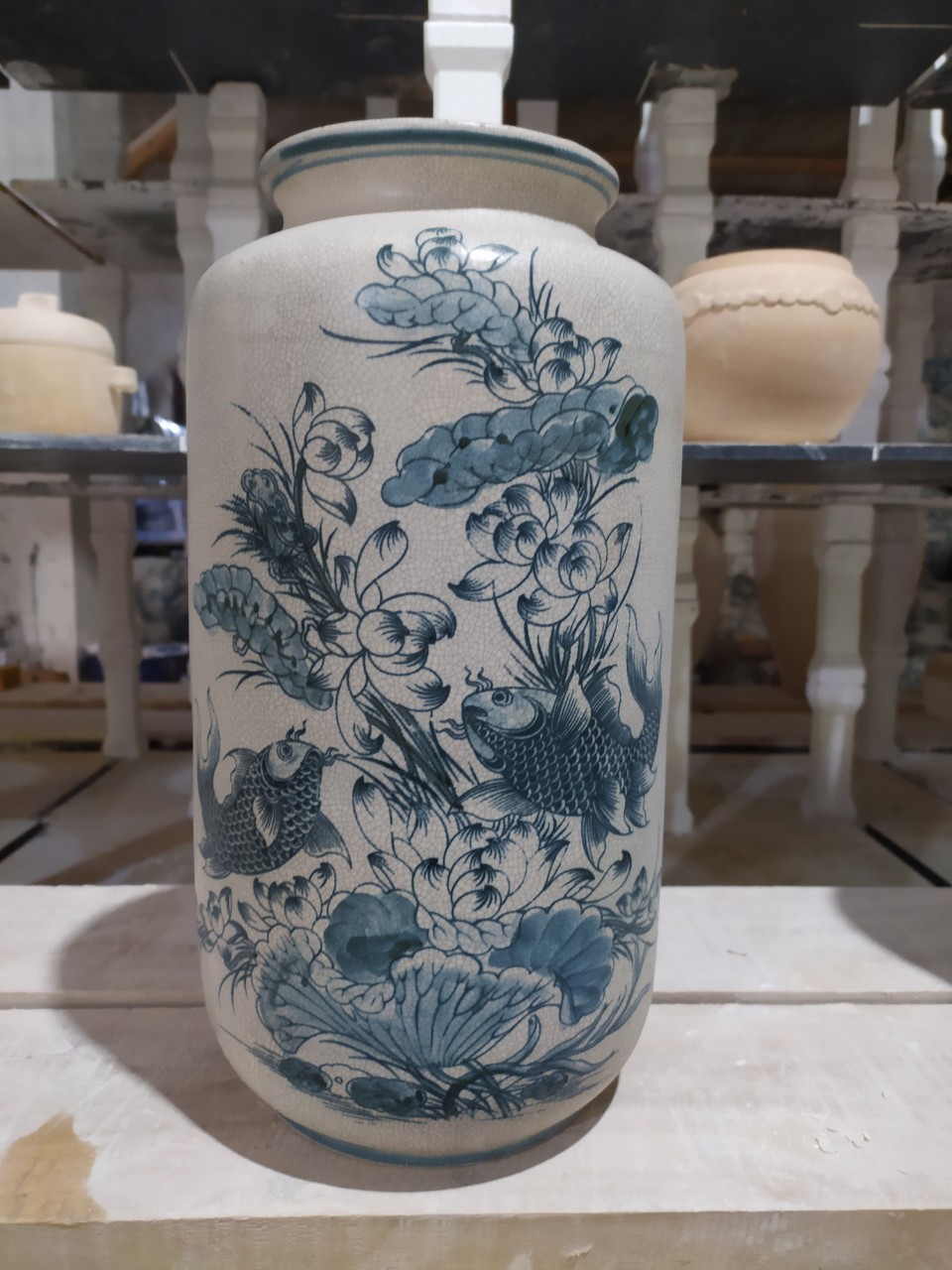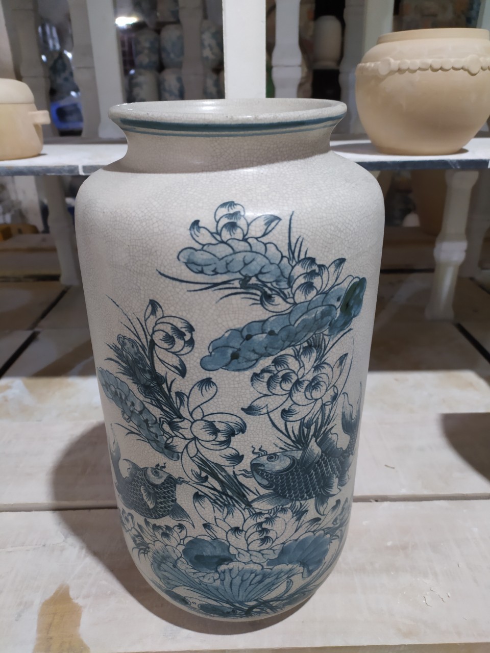 ✨Bình hoa men rạn vẽ sen cá gốm Gia Hưng Bát Tràng