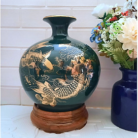 Bình hút tài lộc phong thủy Song ngư vọng nguyệt vẽ vàng 24k gốm sứ Bát Tràng cao cấp (H28xD25cm) Cá chép, từ lâu đã trở thành con vật linh thiêng của nhân dân