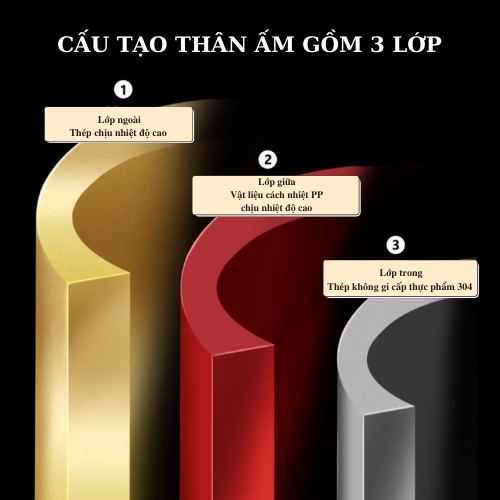 - Vỏ ấm: Inox 3 lớp cao cấp