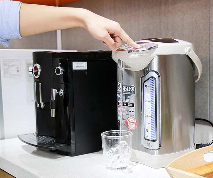 Kết hợp tính năng của bình đun nước điện và bình thủy thông thường, bình thủy điện Khaluck.home KL-945 (5.5L) có khả năng đun sôi và giữ ấm tự động. Bình có dung tích lên