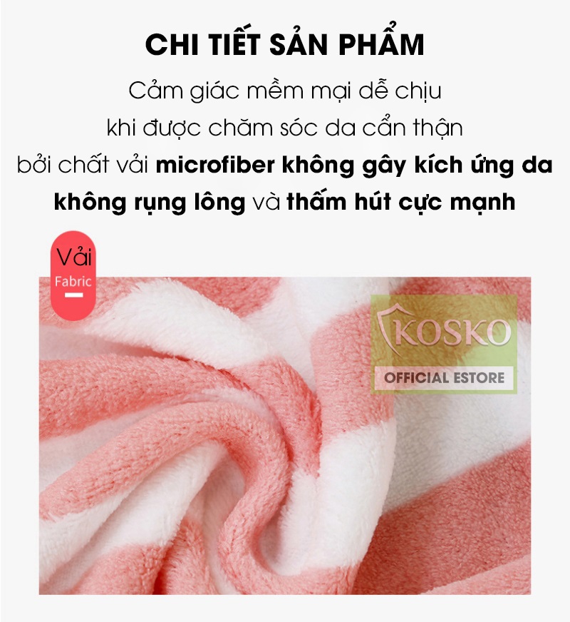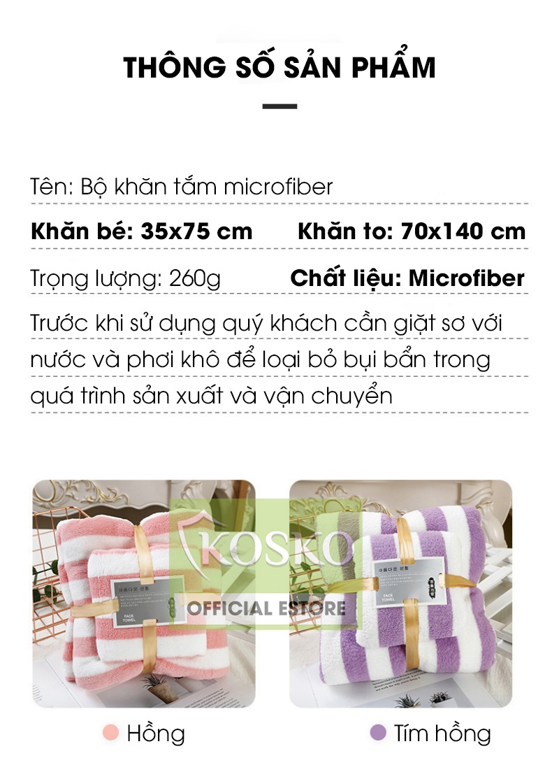 ✨Bộ 2 khăn tắm khổ lớn microfiber KOSKO kích thước 70x140cm và 35x75cm siêu thấm hút không rụng lông