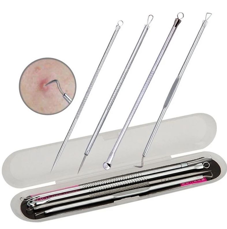 bộ dụng cụ nặn mụn inox 4 cây 8 đầu