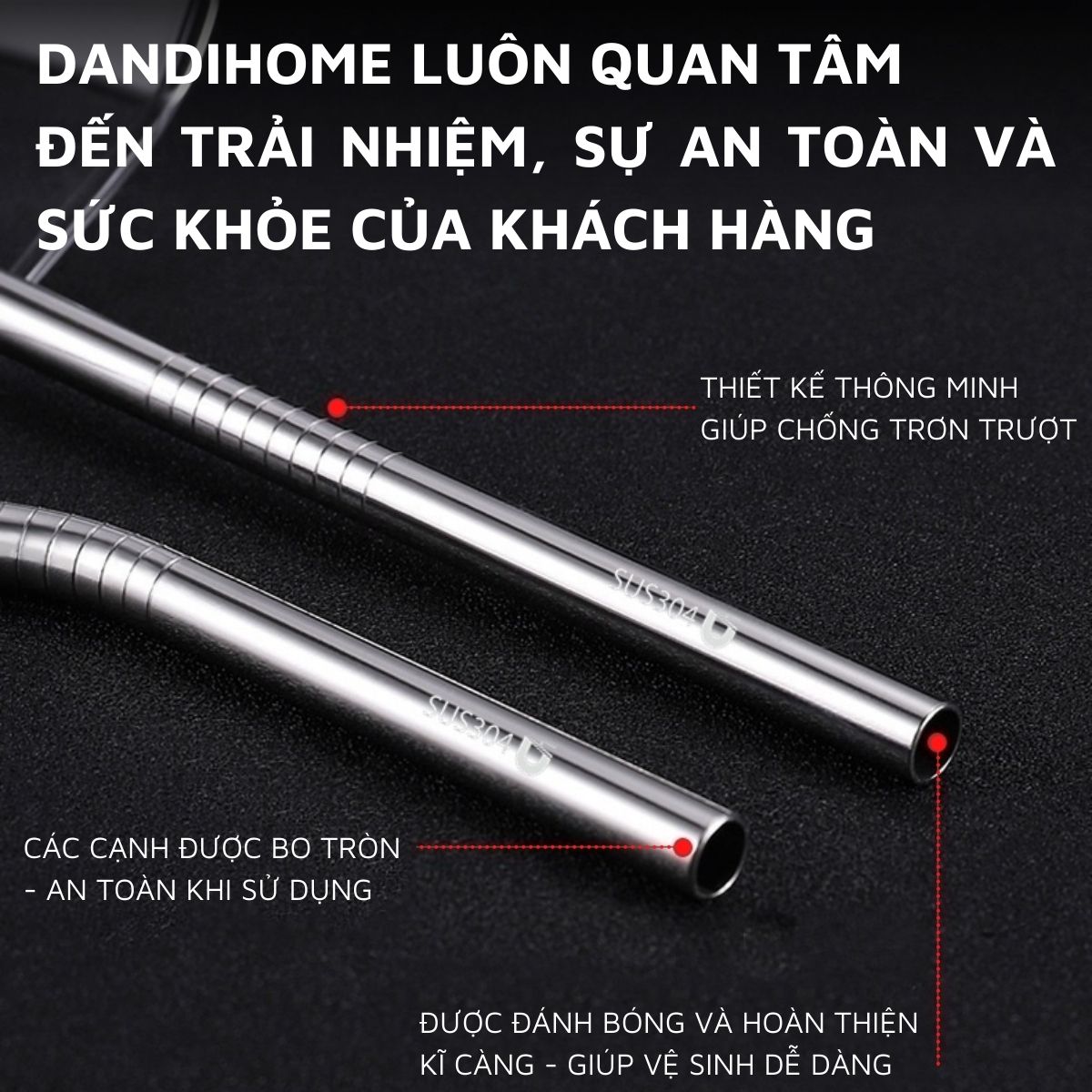 Ống hút được làm từ inox 304, nặng tay và chắc chắn hơn các loại ống hút thông thường.Có 2 kiểu thiết kế cho bạn lựa chọn: loại ống hút đầu thẳng và loại được uốn cong 135 độ ở đầu ống