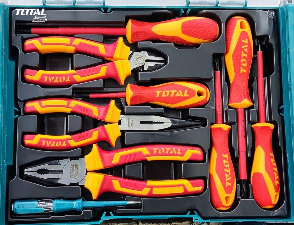 Thương hiệu đồ nghề và máy móc Total ngày càng khẳng định vị thế của mình trên thị trường, cạnh tranh thị phần với những nhãn hiệu có danh tiếng xưa giờ luôn. Total sẽ chứng minh hàng rẻ nhưng có chất lượng tốt là có thật! Total tools - Không cần bỏ số tiền lớn nhưng vẫn có cho mình những đồ nghề chất lượng. Từ những món đồ nghề đơn giản như búa, tuốc nơ vít, lục giác, cờ lê mỏ lết… được sử dụng nhiều trong gia đình cho đến những máy móc dùng điện và pin Lithium-Ion như máy khoan, máy đục bê tông, máy cưa lọng, máy cắt sắt, máy mài góc… công suất mạnh, hay được sử dụng trong nhiều ngàng công nghiệp nặng. Tất cả sản phẩm do Total sản xuất đếu khá là chất lượng và có mức giá rẻ, không như các ông lớn khác là Makita, Stanley… sản phẩm tuy tốt nhưng có giá thánh khá là đắt! Bạn thắc mắc vì sao mà công cụ - dụng cụ Total có giá rẻ ư?! Vì họ không tốn bất cứ tiền quảng cáo, quảng bá thương hiệu nào cả, từ đó mà giá thành sản phẩm rẻ! Thông số kĩ thuật -Mã sản phẩm: THKTV02H091 -Nhà sản xuất: Total -Bộ 9 công cụ cầm tay cách điện gồm: -1 kềm răng cách điện 8 inch. 1 kềm cắt cách điện 6 inch -1 kềm cắt mỏ dài cách điện 8 inch. 1 tua vít cách điện PH1x80mm -1 tua vít cách điện PH2x100mm. 1 tua vít cách điện SL4.0x100mm -1 tua vít cách điện SL5.5361mm. 1 tua vít cách điện PH0x60mm -1 bút thử Điện áp thử nghiệm 100-500VAC