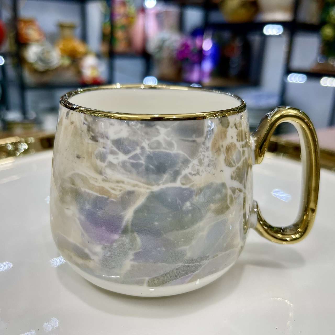 ✨Bộ ấm chén, bình trà cao cấp men vân đá viền mạ vàng 24k đế xoay 360d