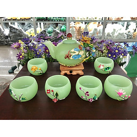 Chất liệu: Đá ngọc Serpentine Bộ sản phẩm gồm: 7 dĩa, 6 ly và 1 ấm trà Dùng để uống trà hoặc làm quà biếu tặ