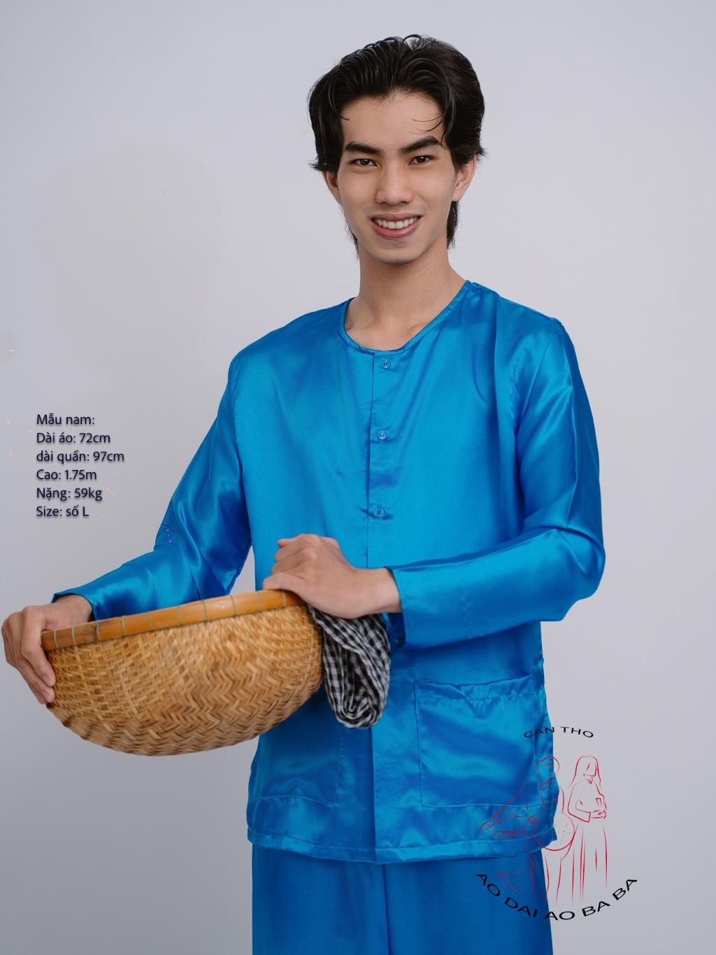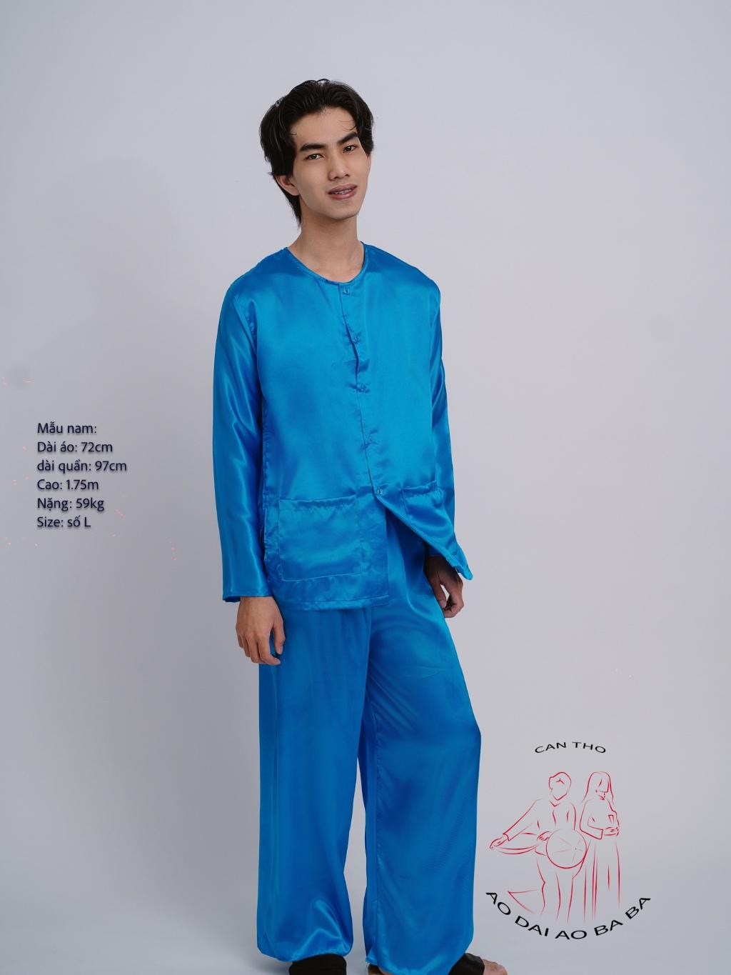 Màu sắc : xanh dương (chưa bao gồm khăn) Cửa hàng xin giới thiệu đến quý khách hàng thêm thông tin về bộ Áo Bà Ba truyền thống miền Tây.