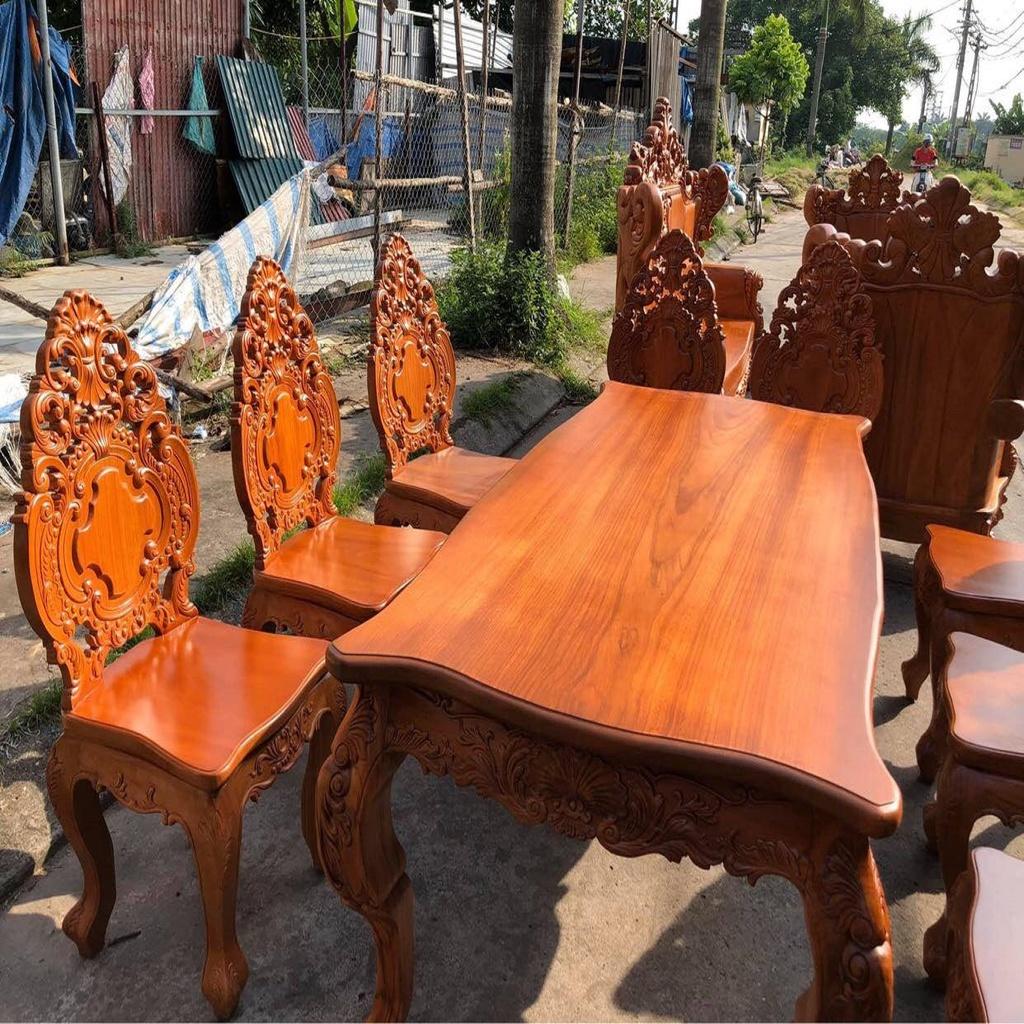 ✨Bộ Bàn Ăn Louis Hoàng Gia Ván Tràn 8 Ghế Liền Vách Gỗ Gõ Đỏ