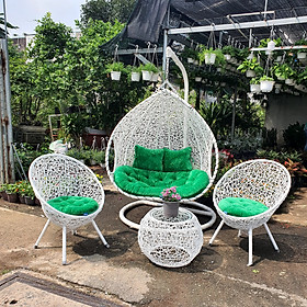 Bộ sản phẩm gồm : 01 xích đu mây + chân sắt + Bộ nệm như hình ảnh mô tả Với đồ nội thất làm từ mây tre đan bạn có thể bày trí ở
