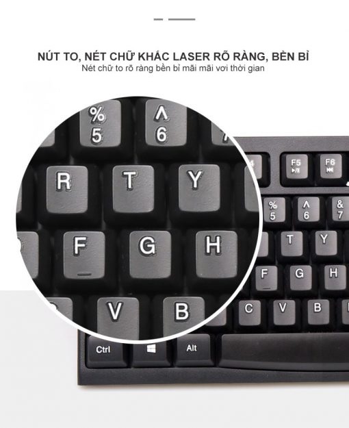 Bàn phím thoải mái và yên tĩnh: Bàn phím cấu hình thấp, gõ thoải mái và yên tĩnh. Bàn phím chống tràn: Thiết kế chống tràn, bảo vệ bàn phím khỏi chất lỏng. Chuột 1000DPI: Độ phân giải