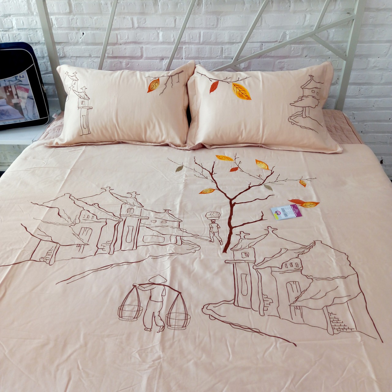 Bộ Chăn Ga Gối Lụa He thong NEM Cao Cấp Bộ Vỏ Chăn Ga Gối Nệm 5 Món Lụa Tencel Vân Chìm Sang Trọng