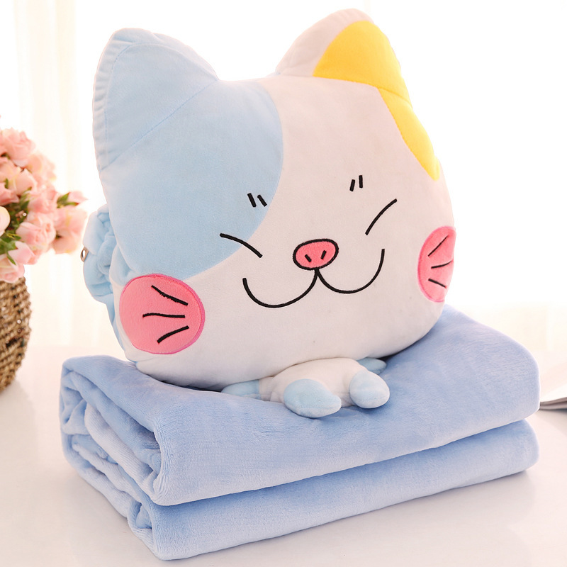 ✨Bộ Chăn Gối Mèo Hoạt Hình 3 IN 1 Mềm Mịn, Chăn gối văn phòng GROFA