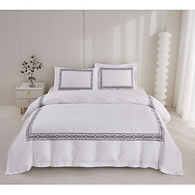 ✨Bộ chăn ra Casa Bello Home - Set Serenity Grey Cotton lụa satin thêu họa tiết thêu 5 món