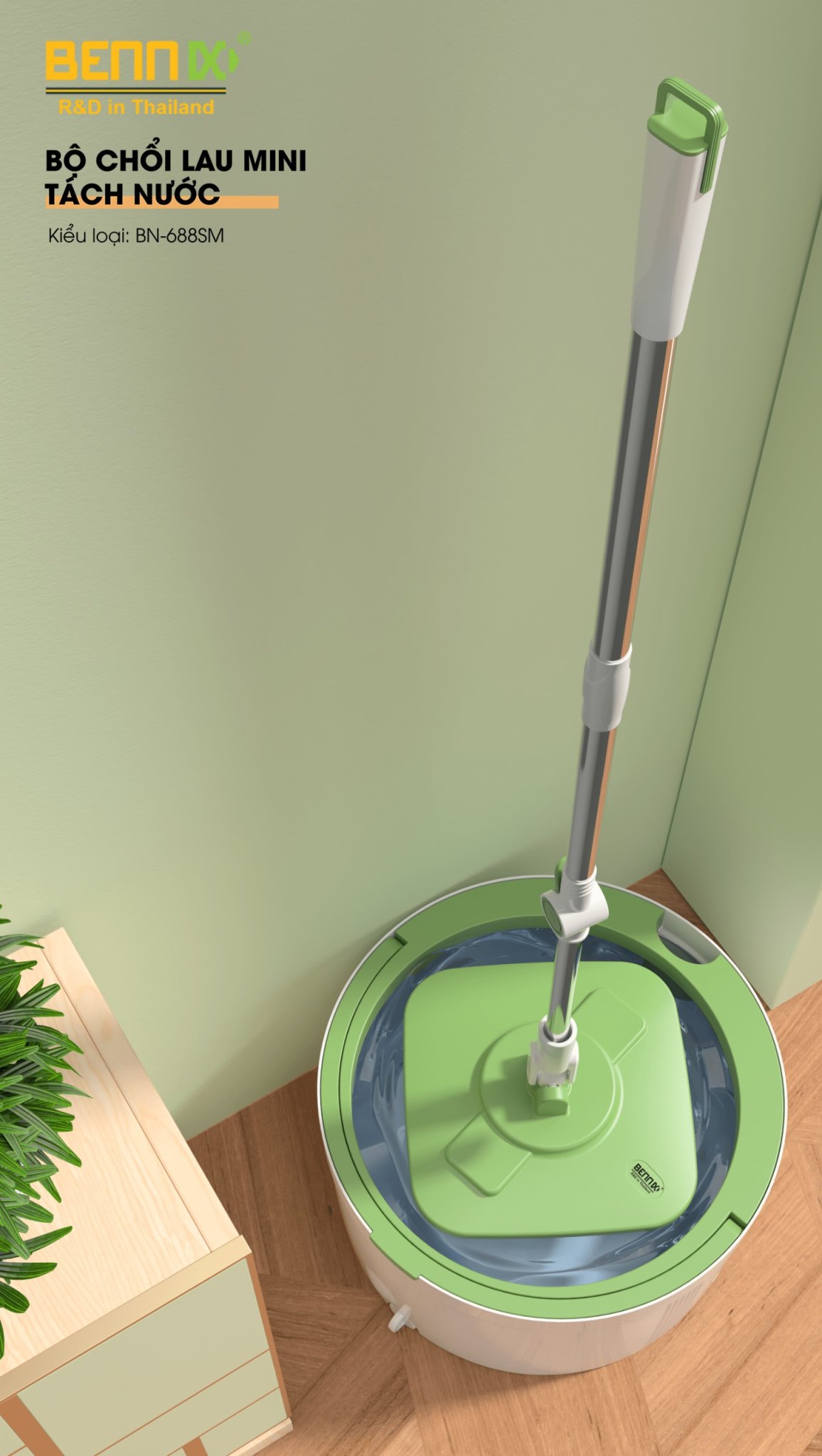 Bộ Chổi Lau Nhà Mini Tách Nước Bẩn Bennix Thailand, Cây Lau Nhà Tự Vắt Thông Minh BN-688SM Kèm Thùng Cao Cấp- Hàng Chính Hãng Bộ Chổi Lau Nhà Mini Tách Nước Bẩn Bennix BN-688SM