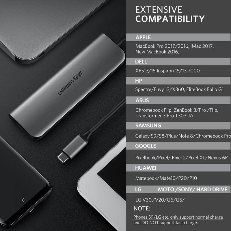 1. Hub USB C mở rộng khối lượng lớn: UGREEN USB C Hub cung cấp giải pháp đơn giản để nâng cấp PC của bạn, mở rộng Cổng 3xUSB 3.0, Gigabit Ethernet và cổng sạc