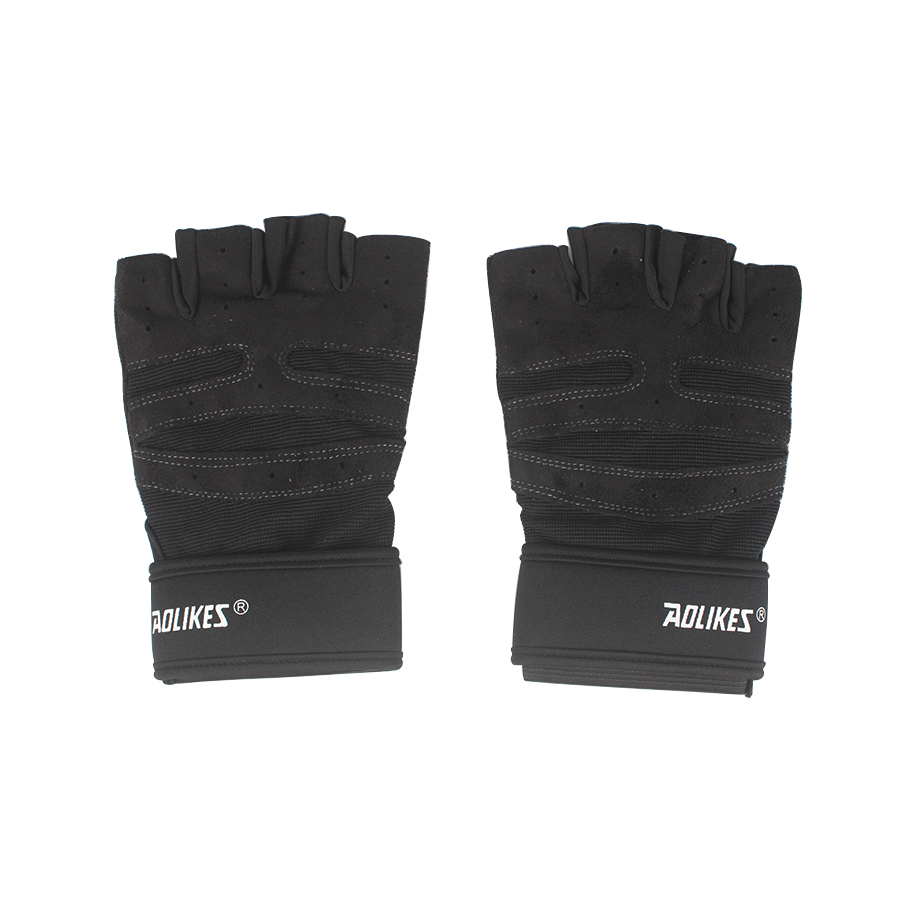 Găng tay Aolikes 113B cụt hở ngón, bao tay thể thao gym có cuốn cổ tay đệm lòng bàn tay gym đẩy tạ AOLIKES 113B (1 đôi) - Găng hở lưng thường - có cuốn