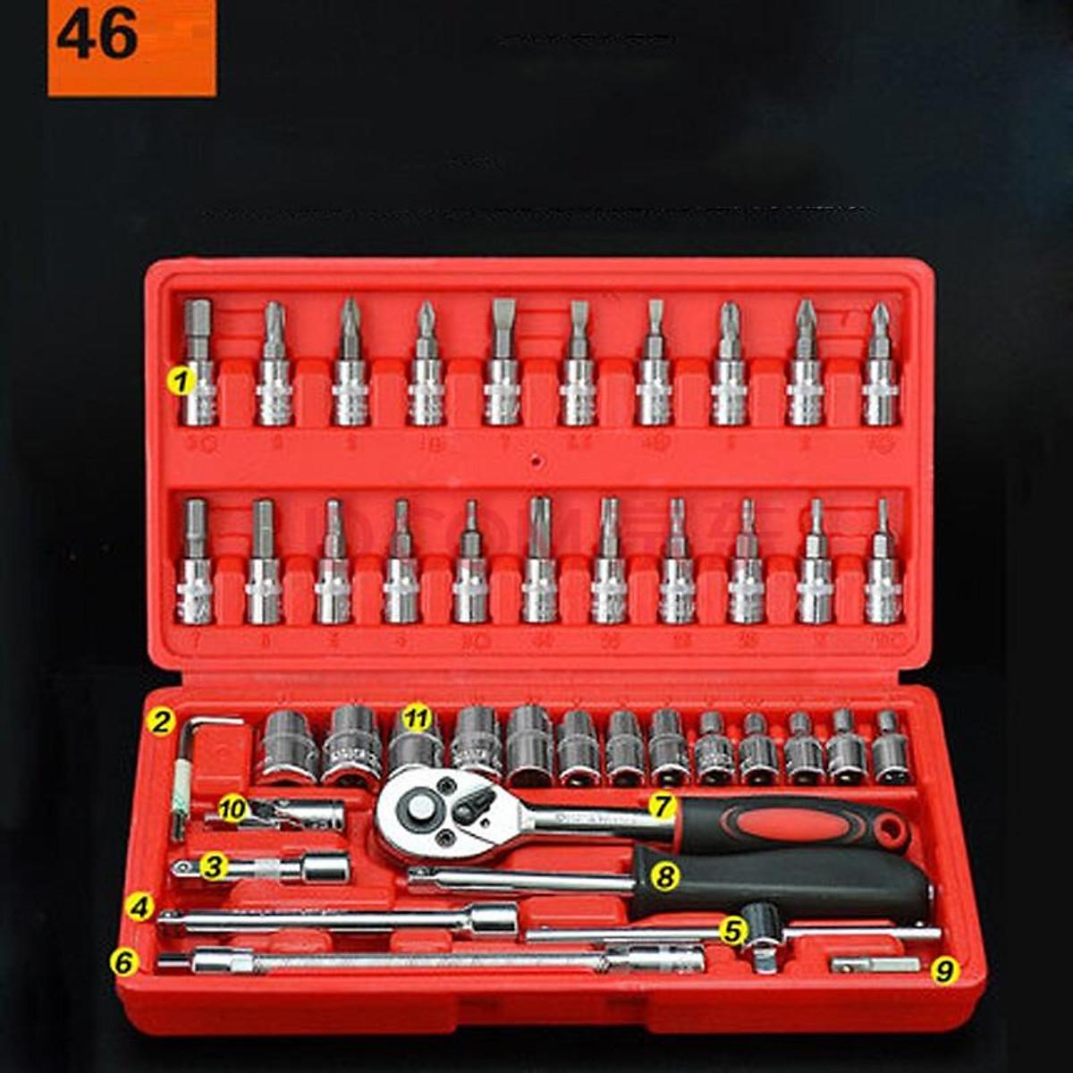 Bộ dụng cụ mở bu lông ốc vít, sửa chữa ô tô xe máy, đa năng 46 chi tiết, chất liệu thép CRV giá rẻ