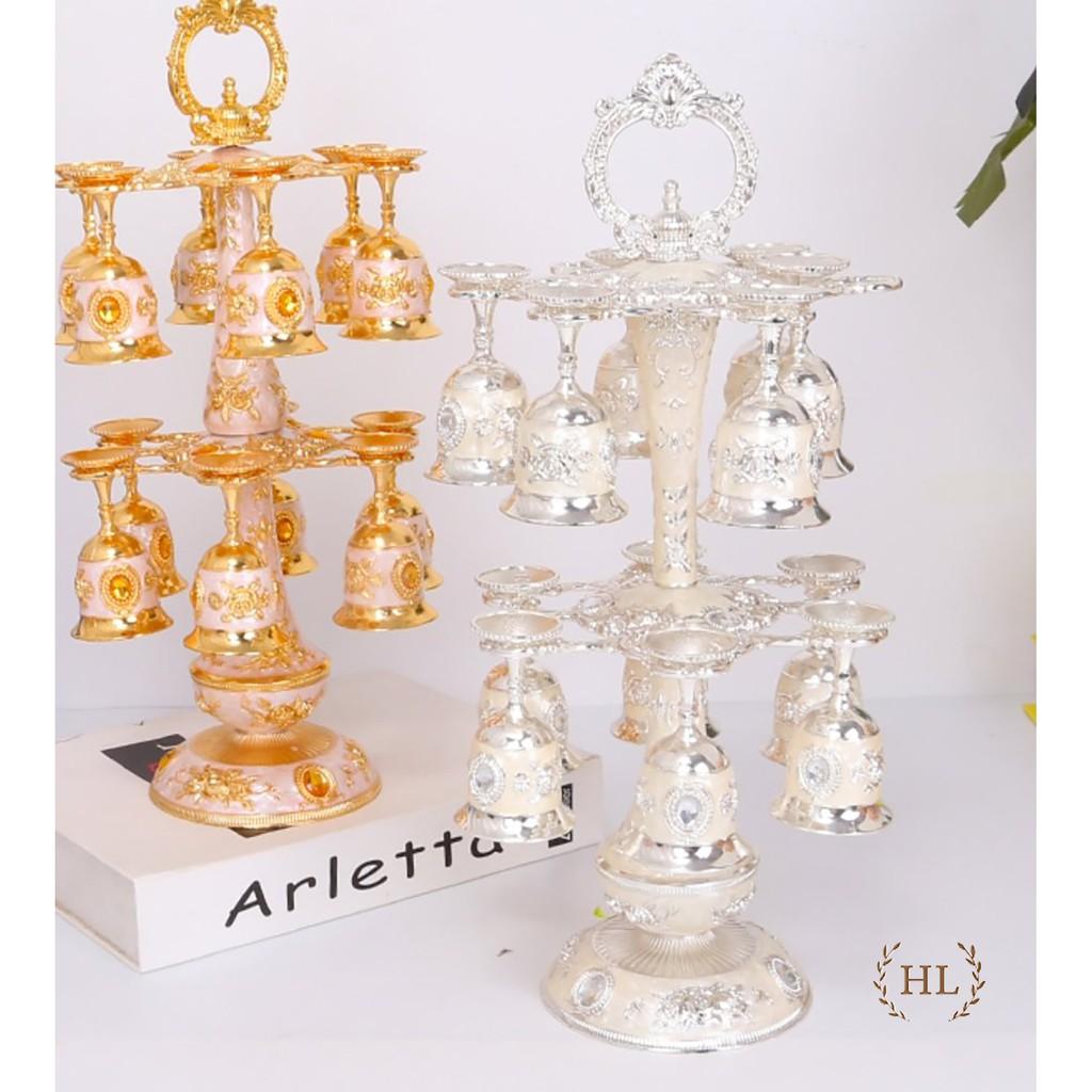 ✨BỘ GIÁ TREO KÈM LY HỢP KIM HOẠ TIẾT HOA VĂN HOÀNG GIA | LY HỢP KIM TÂN CỔ ĐIỂN KTV PHONG CÁCH VƯƠNG QUYỀN