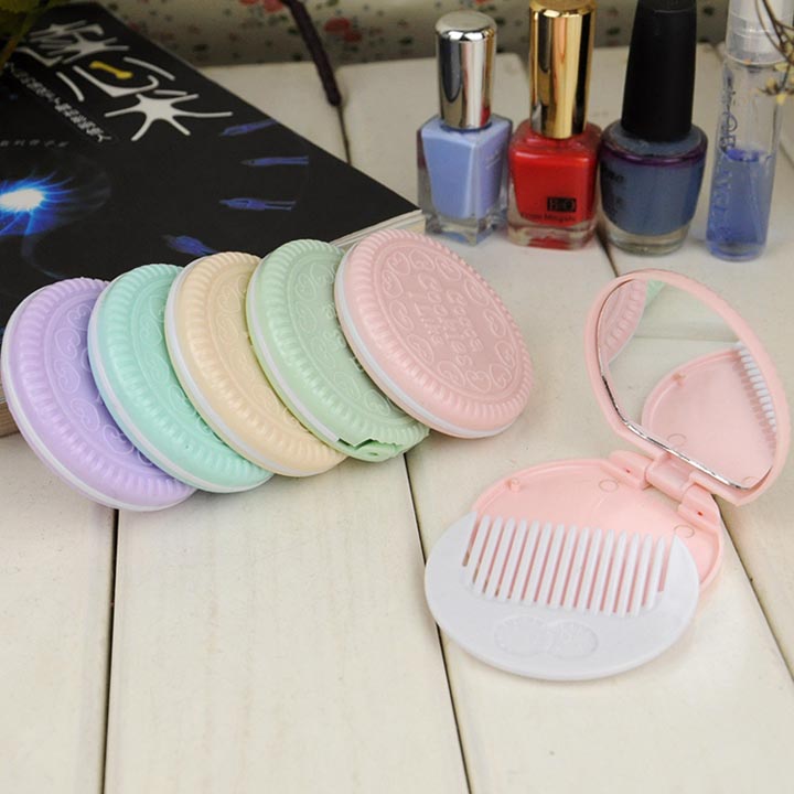 ✨Bộ gương lược bỏ túi mini hình chiếc bánh cookies lạ mắt
