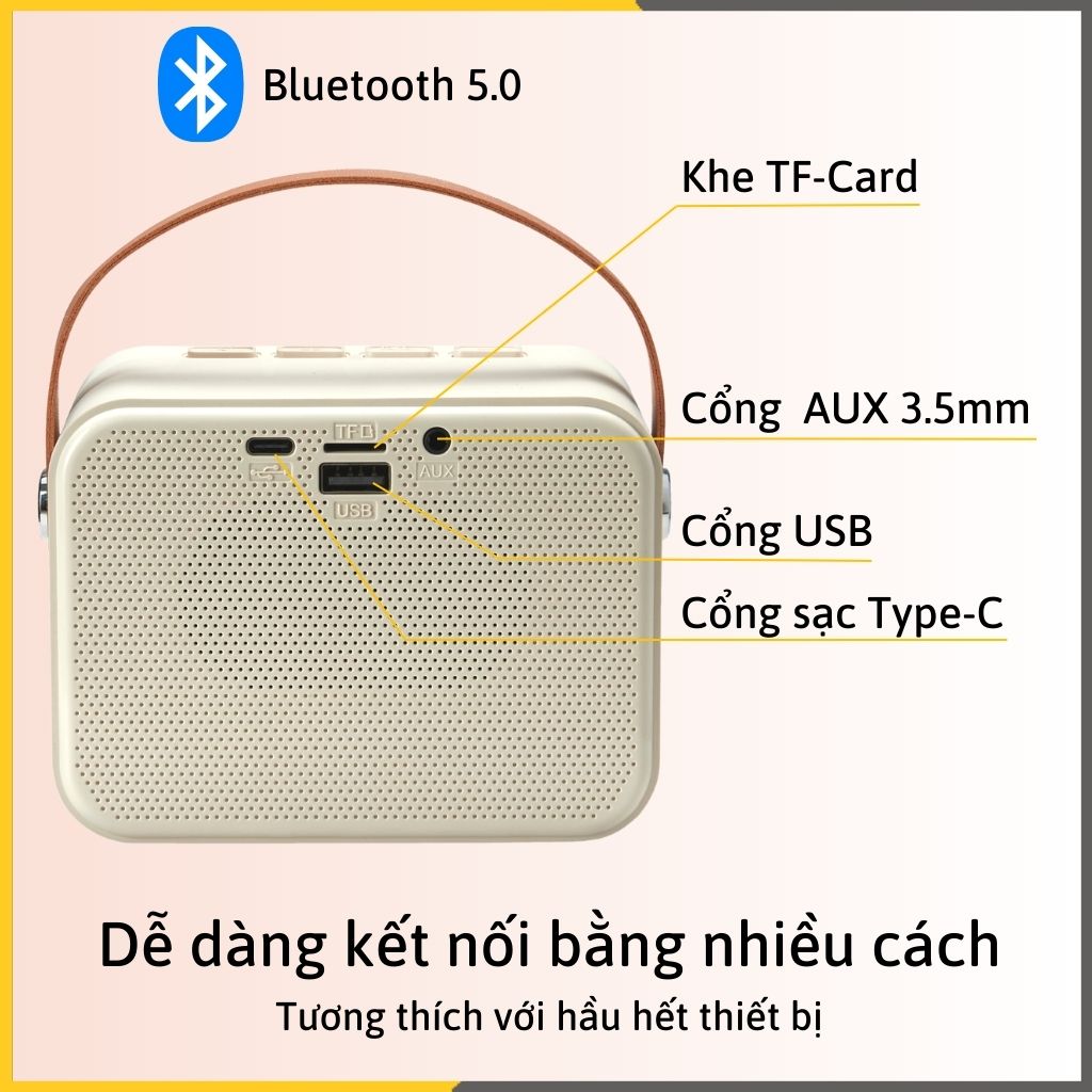 Kết Nối Đa Dạng – Bluetooth 5.0, USB, TF-Card, AUX Tương thích hầu hết thiết bị di động và máy tính – đơn giản hóa kết nối, chỉ cần bật và hát.