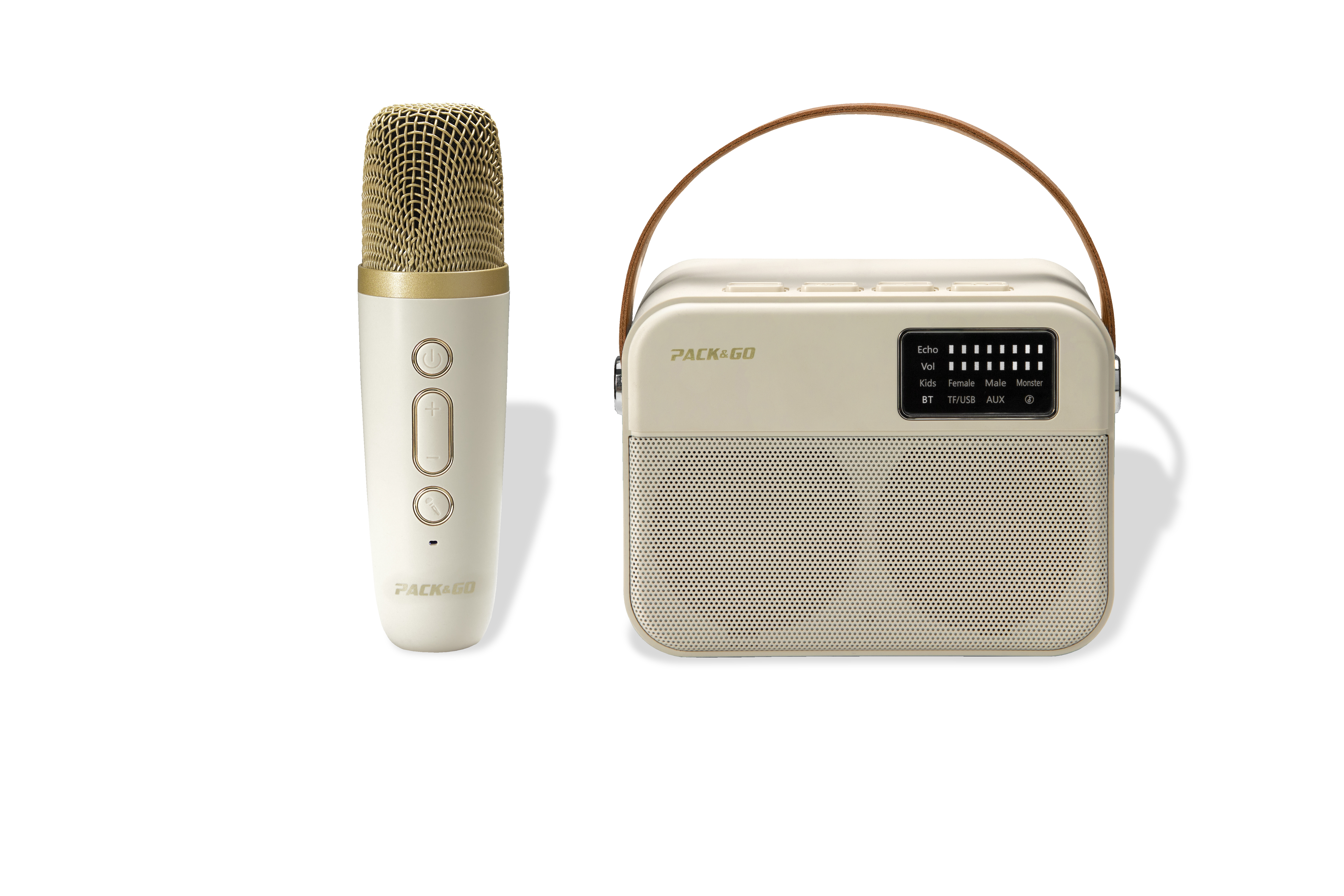 Micro Không Dây Đi Kèm – Tích Hợp Đổi Giọng Cực Vui Micro đi kèm nhỏ gọn, dễ sử dụng, tích hợp các chế độ đổi giọng như giọng em bé, phụ nữ, đàn ông, quái vật – thêm phần thú vị khi hát.