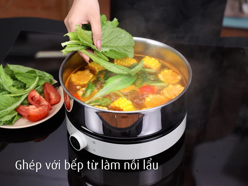 - Công nghệ 3 lớp nguyên khối dẫn nhiệt nhanh, giữ nhiệt tốt, tỏa nhiệt đều giúp thức ăn chín đều, bảo toàn vitamin và khoáng chất trong quá trình đun nấu, cho món ăn