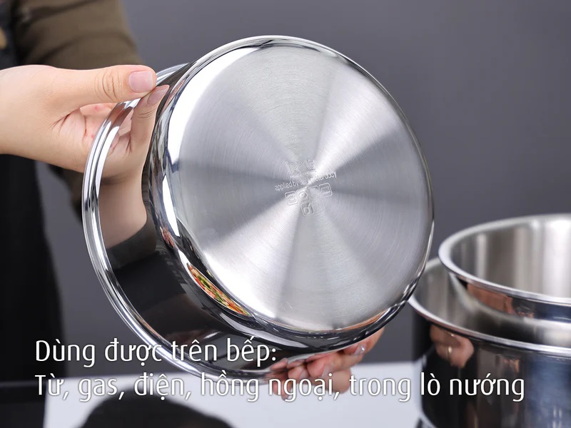 • Dùng được trên mọi loại bếp gồm bếp từ bếp gas bếp điện và bếp hồng ngoại.