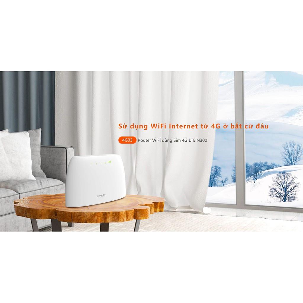 ✨Bộ Phát Wifi 4G Tenda 4G03 dùng sim LTE Có Cổng Lan Chuẩn N300 - Hàng chính hãng