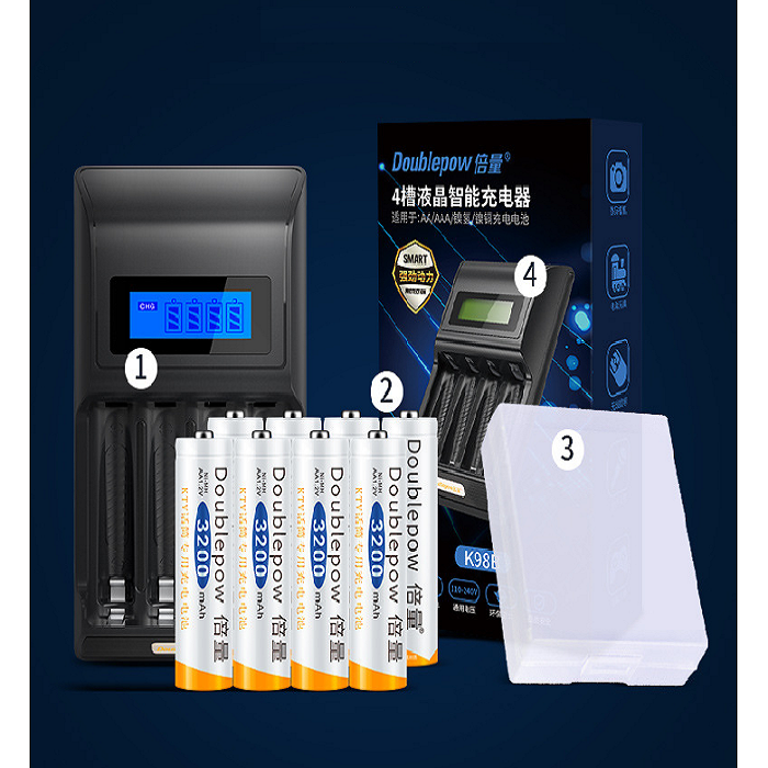 Bộ sạc pin đa năng Doublepow DP-K98 màn hình LCD sạc 4 pin tiểu và pin đũa