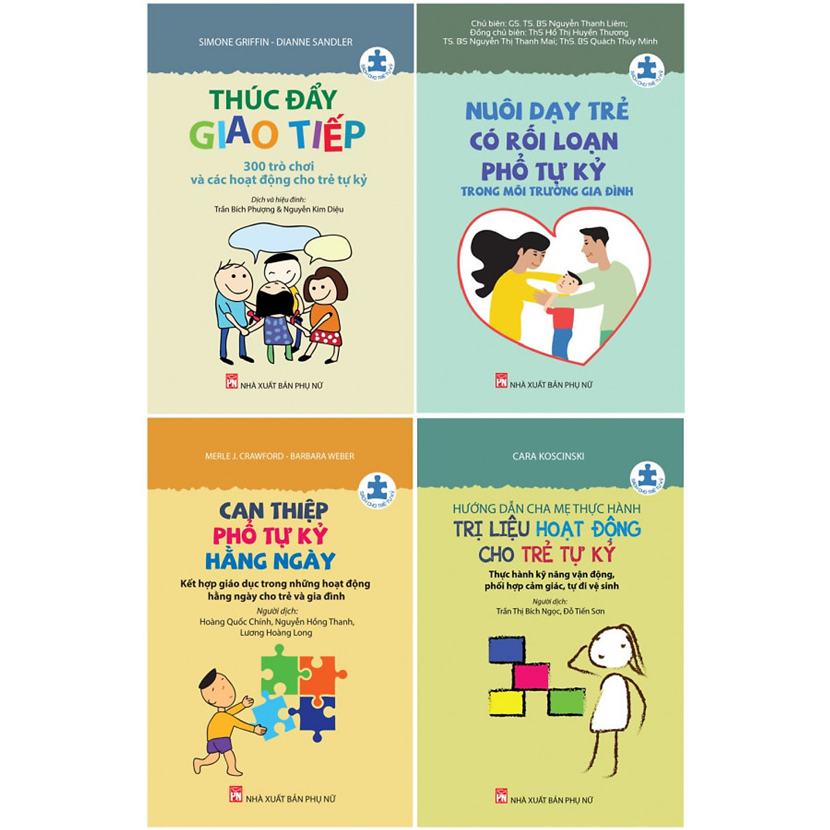Những năm gần đây tỉ lệ trẻ em Việt Nam có rối loạn phổ tự kỷ được phát hiện ngày càng tăng. Mặc dù đa số trẻ có thể hòa nhập và có một cuộc sống tương đối bình thường nếu được phát hiện và can thiệp sớm, nhưng ở nước ta rất nhiều trẻ còn được can thiệp muộn hoặc thậm chí không được can thiệp, đặc biệt là trẻ em ở các vùng nông thôn, miền núi. Đội ngũ cán bộ được đào tạo chuyên về lĩnh vực giáo dục can thiệp cho trẻ có rối loạn phổ tự kỷ còn rất ít. Các cơ sở giáo dục chuyên biệt hầu như chỉ có ở các thành phố. Bố, mẹ và gia đình đóng vai trò đặc biệt quan trọng trong việc giáo dục can thiệp cho trẻ nhưng đa số các phụ huynh rất lúng túng vì thiếu kiến thức. Tài liệu hướng dẫn can thiệp giáo dục cho trẻ rối loạn phổ tự kỷ ở Việt Nam, đặc biệt là những tài liệu hướng dẫn theo kiểu “cầm tay chỉ việc” không nhiều. Trăn trở trước thực trạng đó, giáo sư, tiến sĩ, bác sĩ Nguyễn Thanh Liêm (cùng các cộng sự nhóm từ thiện Nhịp Cầu Yêu Thương) và NXB Phụ nữ đã chung tay xuất bản một bộ sách nhằm cung cấp cho các bậc cha mẹ, ông bà và người chăm sóc trẻ những kiến thức và kỹ năng cơ bản nhất, thực tế nhất, dễ áp dụng nhất để có thể hướng dẫn, giáo dục can thiệp trẻ có rối loạn phổ tự kỷ tại nhà. Series SÁCH CHO TRẺ TỰ KỶ xuất bản lần đầu gồm 5 cuốn, trong đó có 3 cuốn sách của các tác giả nước ngoài - những chuyên gia, huấn luyện viên có chứng chỉ quốc tế về can thiệp và chăm sóc trẻ tự kỷ - được dịch sang tiếng Việt (Thúc đẩy giao tiếp – 300 trò chơi và hoạt động cho trẻ tự kỷ; Can thiệp phổ tự kỷ hằng ngày - Kết hợp giáo dục trong những hoạt động hằng ngày cho trẻ và gia đình; Hướng dẫn cha mẹ thực hành kỹ năng trị liệu hoạt động cho trẻ tự kỷ - Thực hành kỹ năng vận động, phối hợp cảm giác, tự đi vệ sinh…). Và 2 cuốn sách viết bằng tiếng Việt (Nuôi dạy trẻ có rối loạn phổ tự kỷ trong môi trường gia đình; Những đứa trẻ mộng mơ) của các tác giả Việt - những bác sĩ, chuyên gia tâm lý, chuyên gia can thiệp trị liệu đặc biệt… có nghiên cứu chuyên sâu và có nhiều kinh nghiệm điềutrị và can thiệp cho trẻ tự kỷ. Trẻ em chính là quà tặng của Thượng Đế, hay như dân gian vẫn gọi “con cái là lộc trời cho”, là những mầm sống chứa đựng biết bao ước mơ và hy vọng của ba mẹ chúng. Chăm sóc những em bé bình thường vốn đã không đơn giản. Nuôi dưỡng những em bé đặc biệt có lẽ là một “sứ mệnh” mà khó có ngôn từ nào diễn tả được hết ý nghĩa thiêng liêng của nhiệm vụ ấy. Như chính tác giả Cara Kosscinski - chuyên gia trị liệu hoạt động đồng thời là mẹ của hai người con tự kỷ - tâm sự: “Khi mới bắt đầu sự nghiệp trị liệu hoạt động, tôi không ngờ rằng tôi sẽ trải qua câu chuyện của chính mình. Chứng kiến con mình lớn lên, tôi nhận ra con có những dấu hiệu rõ ràng và trầm trọng trong việc chậm phát triển kỹ năng xã hội và xúc cảm. Cậu bé dần dần bỏ lỡ tất cả các mốc phát triển của một em bé bình thường, có những cơn giận dỗi kinh hoàng và càng ngày càng xa cách. Bất lực và đầy lo lắng, tôi đem những câu hỏi của mình đi khắp nơi nhưng không nhận được câu trả lời.… Tôi đã biết thế nào là cuộc sống cùng những đứa trẻ gặp khó khăn với những công việc tưởng chừng như đơn giản thường ngày…”.  Vượt Qua Chứng Tự Kỷ Với The Son – Rise Program Khi còn là một cậu bé, Raun Kaufman được chẩn đoán bởi các chuyên gia rằng cậu mắc hội chứng tự kỷ nặng, với chỉ số IQ thấp dưới 30, và đây là một tình trạng sẽ theo cậu suốt đời, không có gì thay đổi. Nhiều năm sau đó, Raun tốt nghiệp với tấm bằng Đạo Đức Y Sinh của đại học Brown và trở thành một chuyên gia trong lĩnh vực tự kỷ, một nhà giáo dục với niềm đam mê và ăn nói lưu loát. Vậy chuyện gì đã xảy ra? Một lời cảm ơn dành cho chương trình The Son-Rise Program , một phương pháp đột phá được tạo ra bởi chính phụ huynh của Raun, đã giúp ông hồi phục từ chính chứng tự kỷ của mình. ( Câu chuyện của Raun được thuật lại chi tiết trong quyển Son Rise: Tiếp Nối Điều Kì Diệu một quyển sách bán chạy và nhận được giải thưởng của kênh truyền hình NBC dành cho bộ phim truyền hình Son Rise: Điều Kì Diệu Của Tình Yêu Thương). Trong Vượt Qua Hội Chứng Tự Kỷ, Raun trình bày những nguyên tắc mang tính đột phá đằng sau chương trình đã giúp cho ông và hàng ngàn các gia đình của những trẻ em đặc biệt trên thế giới. Tự kỷ, theo như Raun giải thích, là thường xuyên bị hiểu lầm như một dạng rối loạn hành vi, trong khi trên thực tế nó là một rối loạn về quan hệ xã hội. Raun giải thích được tự kỷ từ bên trong sẽ cảm thấy như thế nào và ông cho thấy lí do và cách thức mà chương The Son-Rise Program hoạt động. Từng bướ